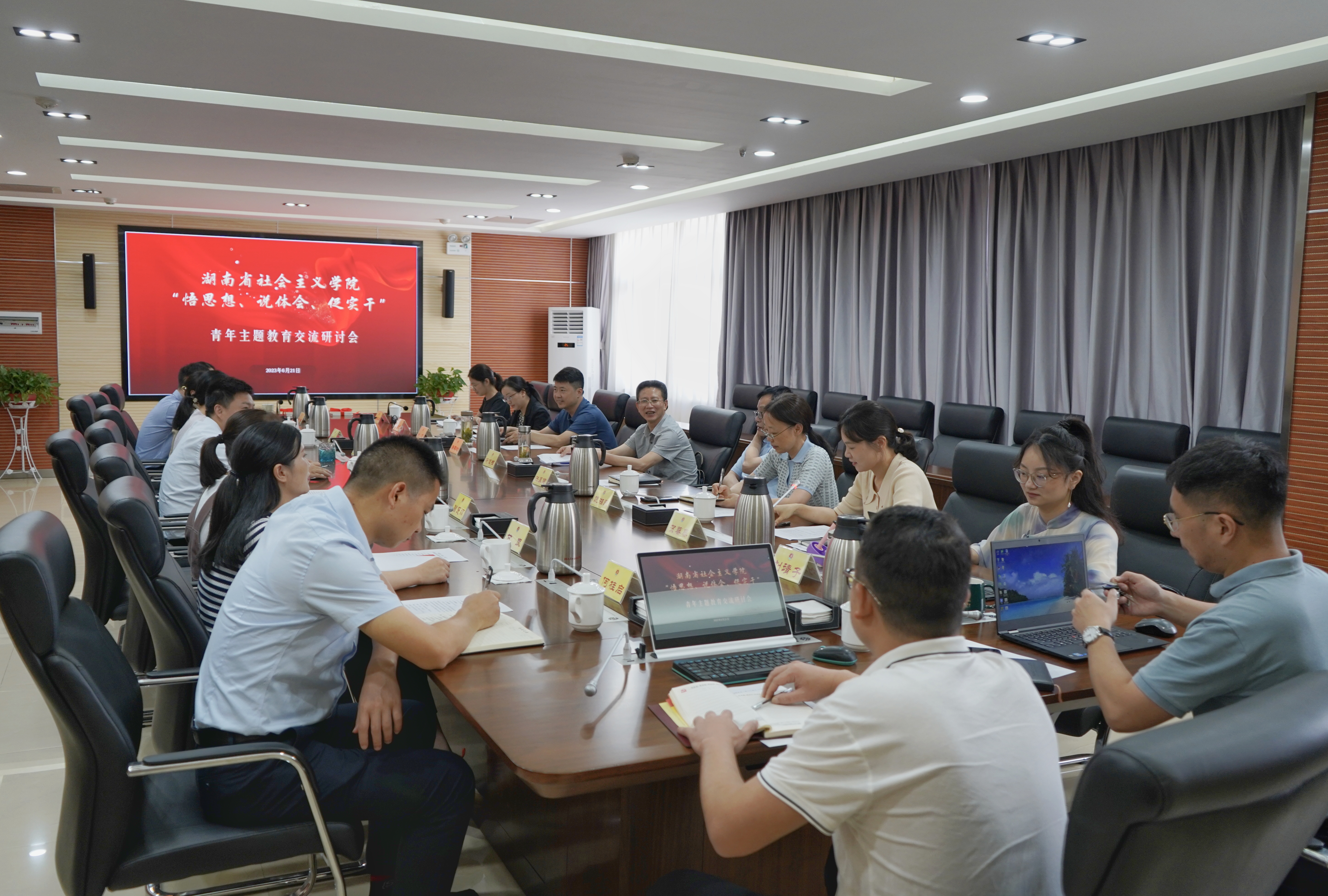 6月21日上午,省社会主义学院召开学习贯彻习近平新时代中国特色社会主义思想主题教育青年交流座谈会。省委统战部副部长、院党组书记符俊根出席并讲话。副院长、党组成员洪真健出席,有关处室负责人和全院青年干部教师参加座谈。
