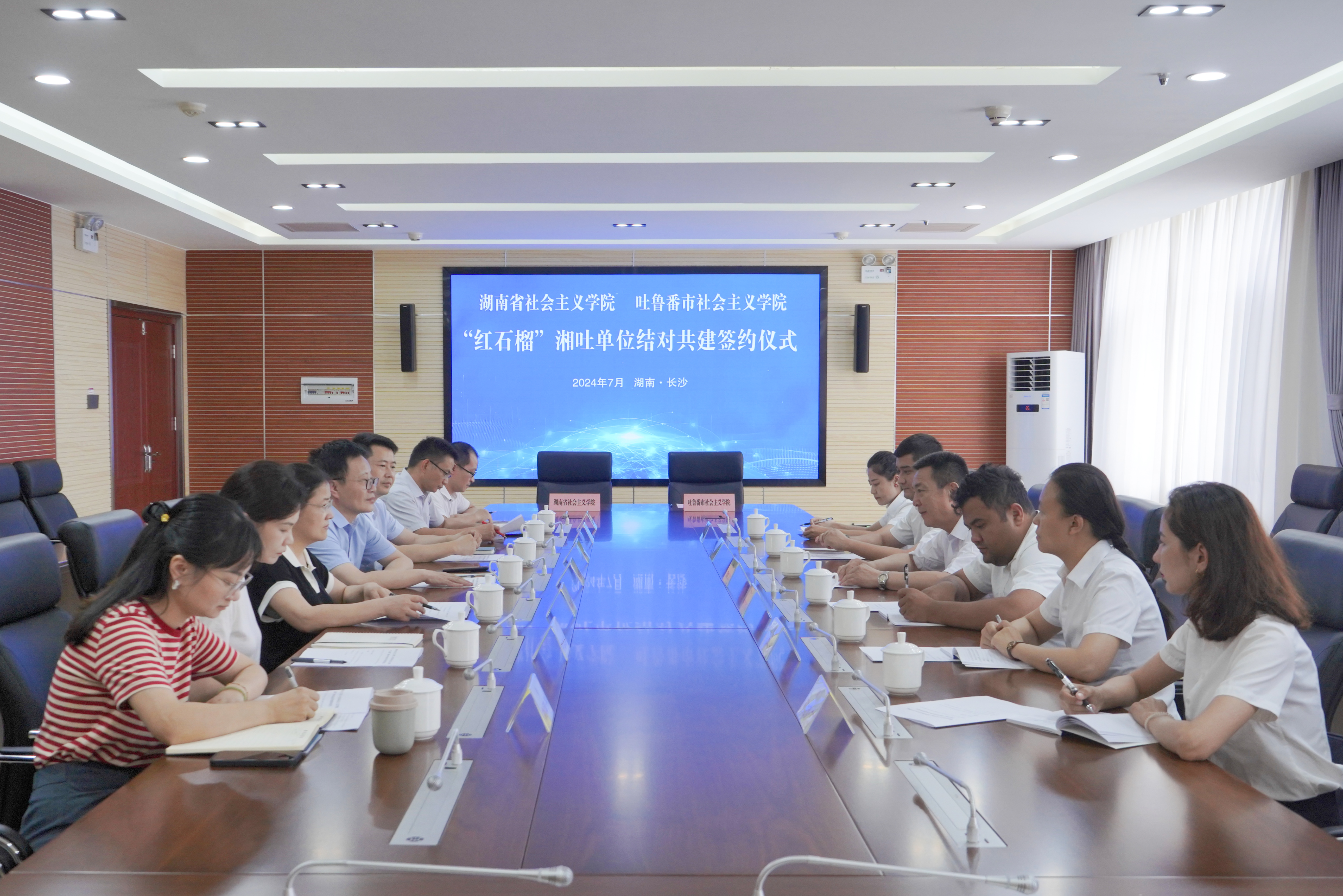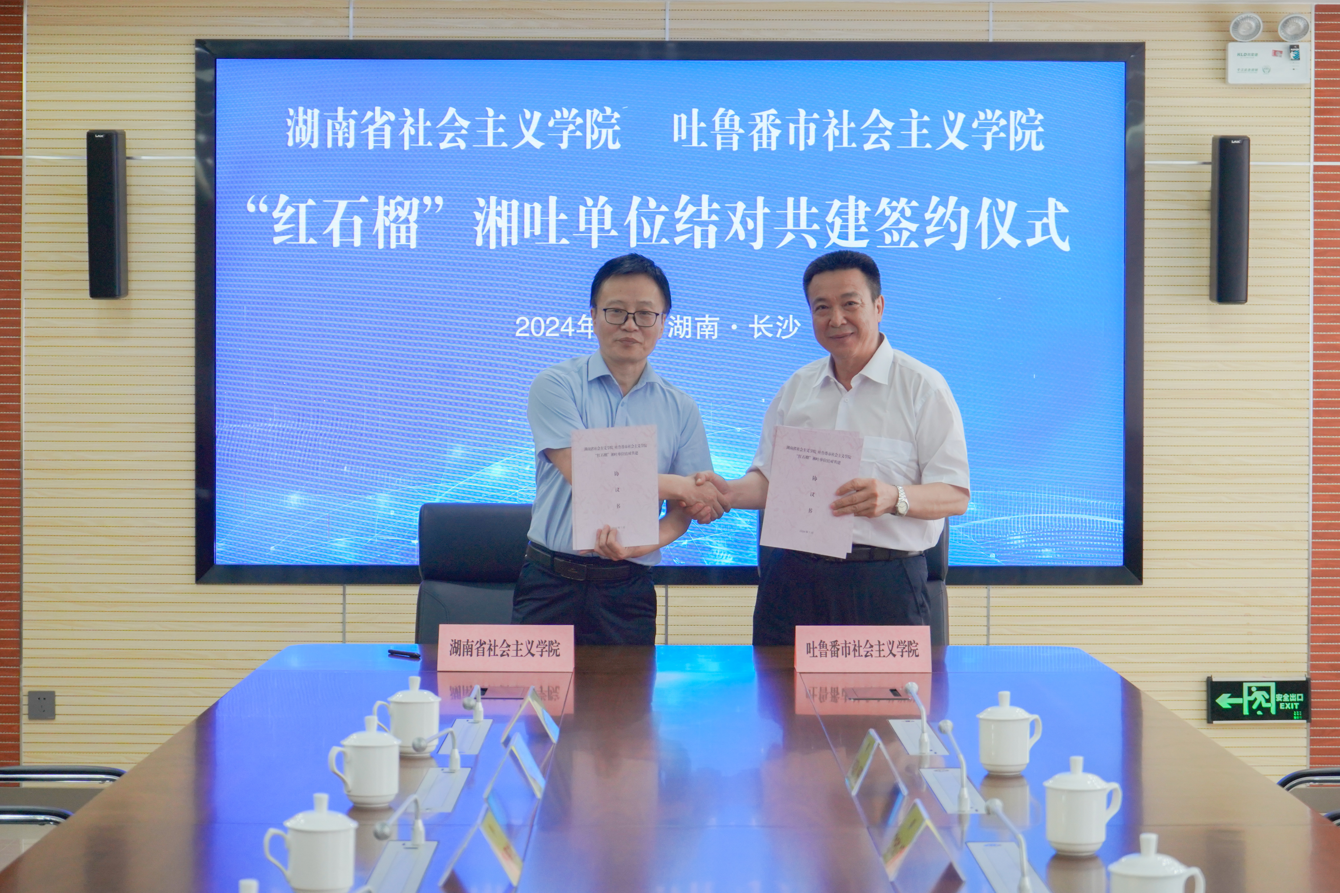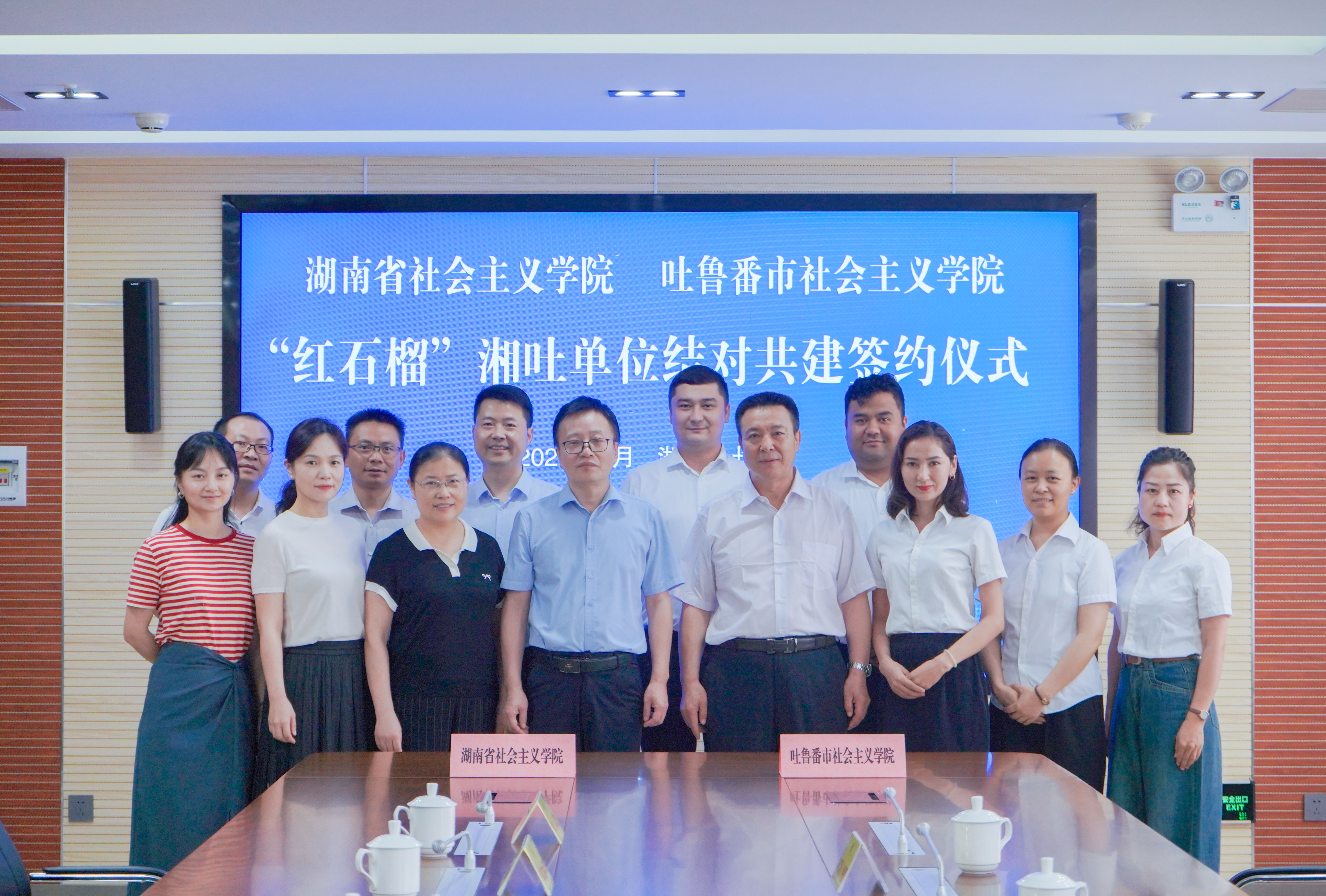 为深入贯彻落实第三次中央新疆工作座谈会和第九次全国对口支援新疆工作会议精神,推进社院事业创新发展联合体建设,7月12日下午,拼搏在线(湖南省中华文化学院)与吐鲁番市社会主义学院举行“红石榴”湘吐单位结对共建签约仪式。