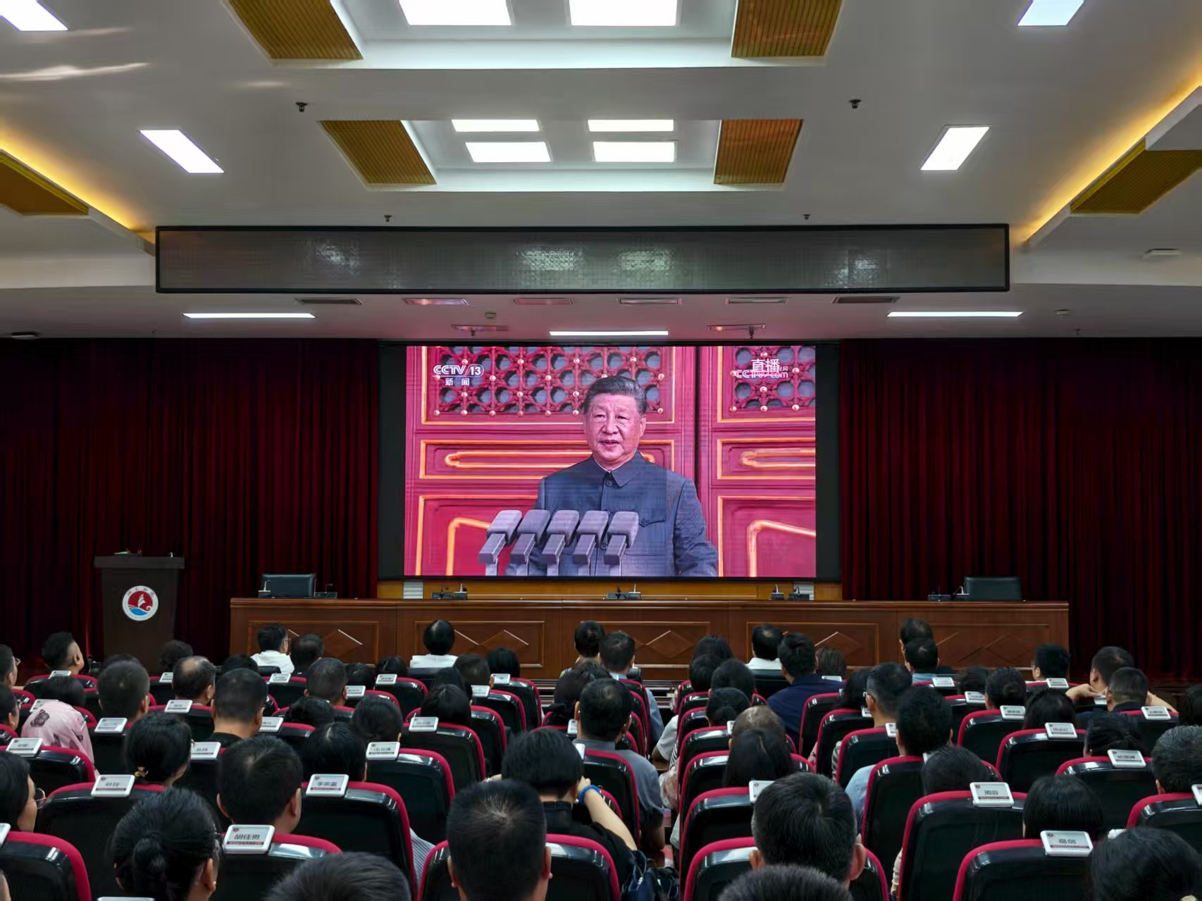 9月3日上午,纪念中国人民抗日战争暨世界反法西斯战争胜利80周年大会在天安门广场隆重举行。省社会主义学院组织主体班学员和全体教职工在报告厅集中收看大会直播,回顾抗战历史,缅怀革命先烈,传承抗战精神。