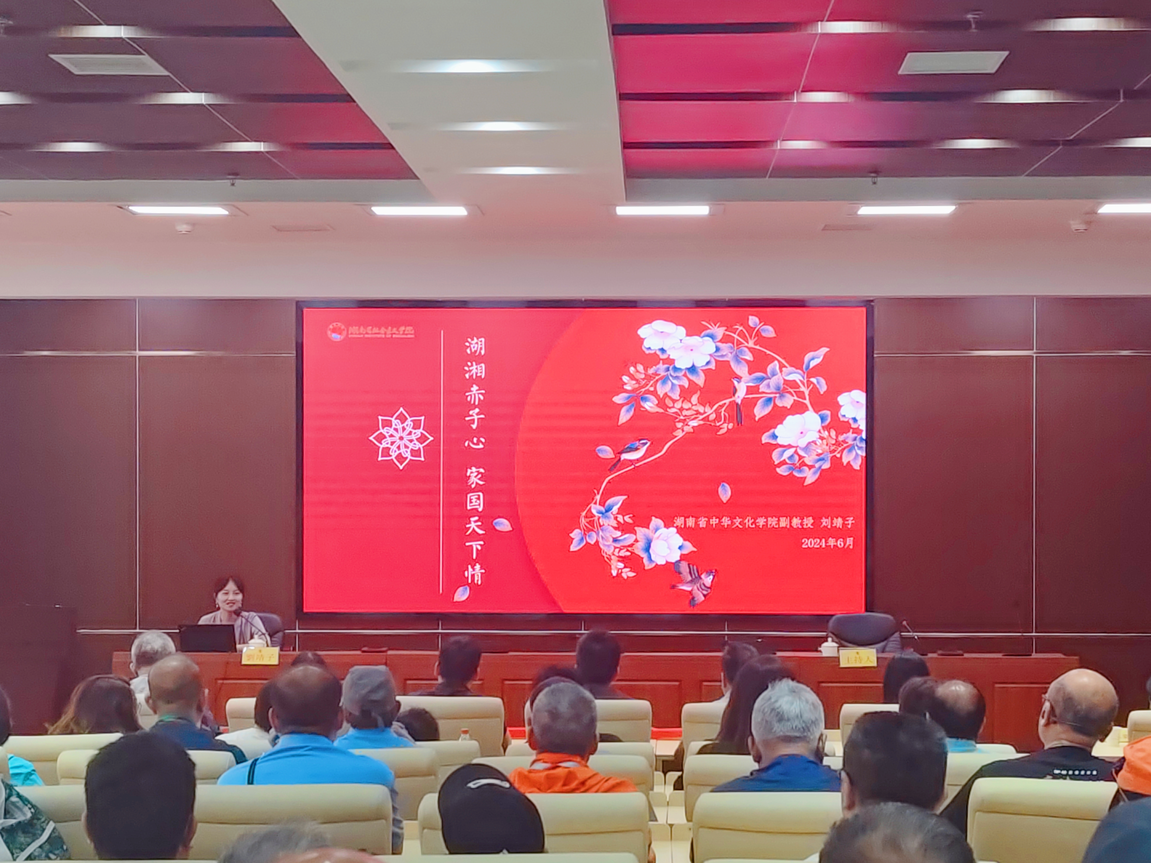 第三天,学员们聆听了《湖湘赤子心 家国天下情》专题讲座,湖南省中华文化学院副教授刘靖子在讲述中,从端午文化中涵养的家国情怀讲起,通过现场提问、互动交流、播放短片等方式,让学员们对湖湘文化、家国精神有了更深刻的认识和感悟。没有枯燥的讲解,没有刻板的说教,课堂中穿插的互动教学和案例教学,让大家受益匪浅、感受颇深。“这堂课让我真切地理解了‘我们的岁月静好,家国的长治久安,是因为有人负重前行’这句话的深刻含义。”