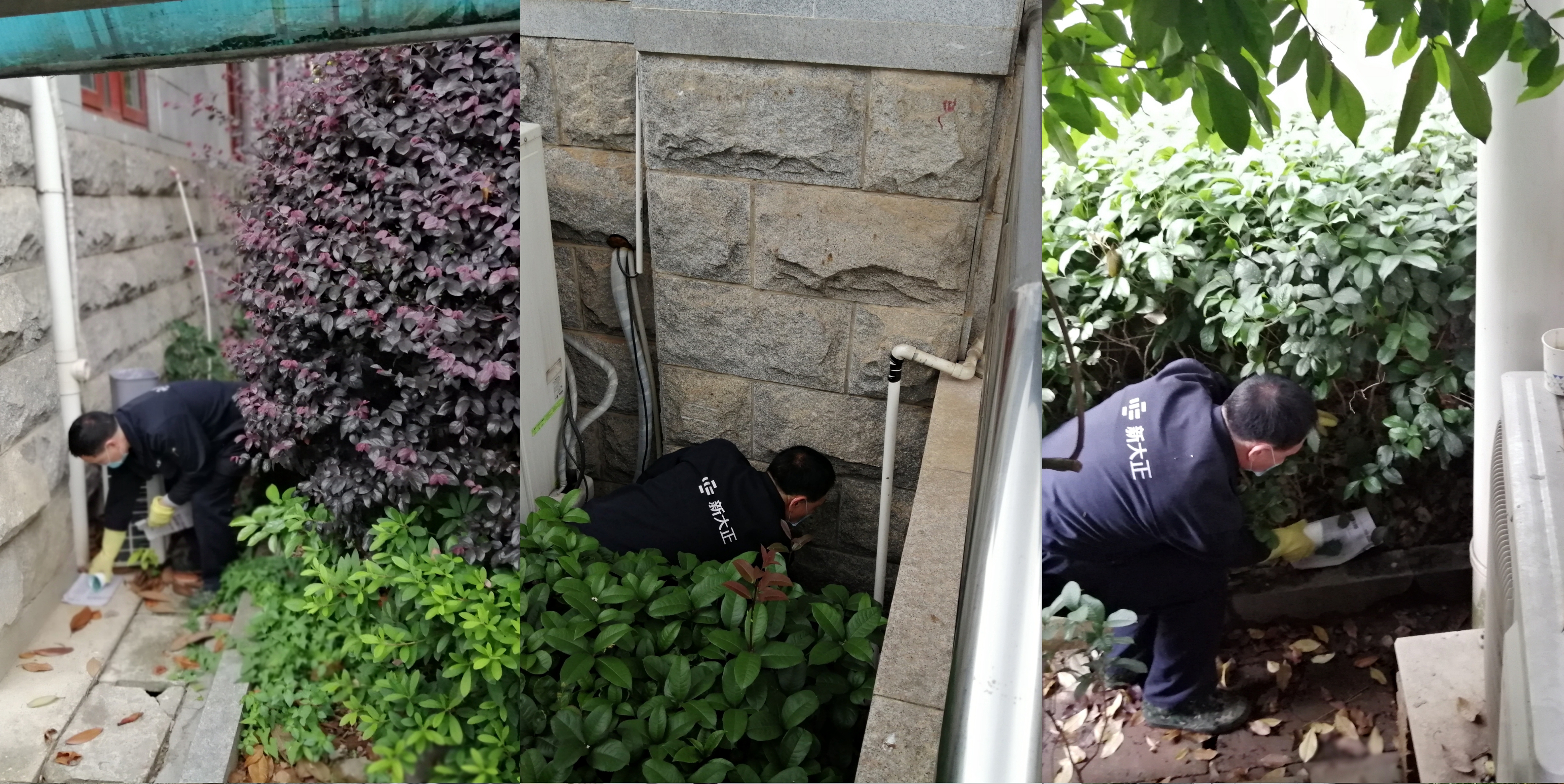 我院每年多次开展灭鼠行动,效果良好。5月20日,我院专门组织物业工作人员在院内墙角、下水道和绿化带等老鼠活动频繁的地方投放灭鼠药。在灭鼠投药前,物业服务中心在电梯及居民楼道等处张贴了投药的安全提示。