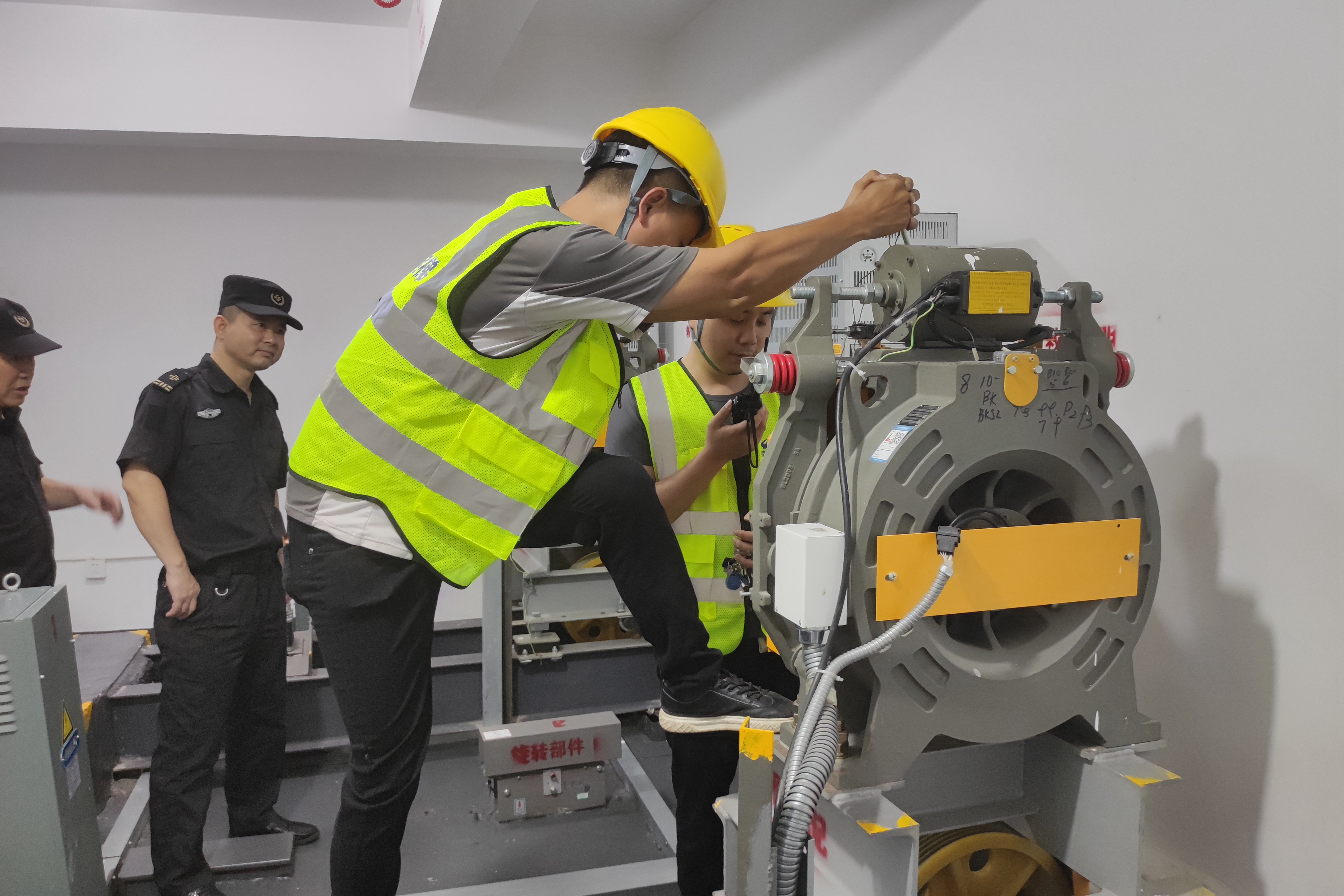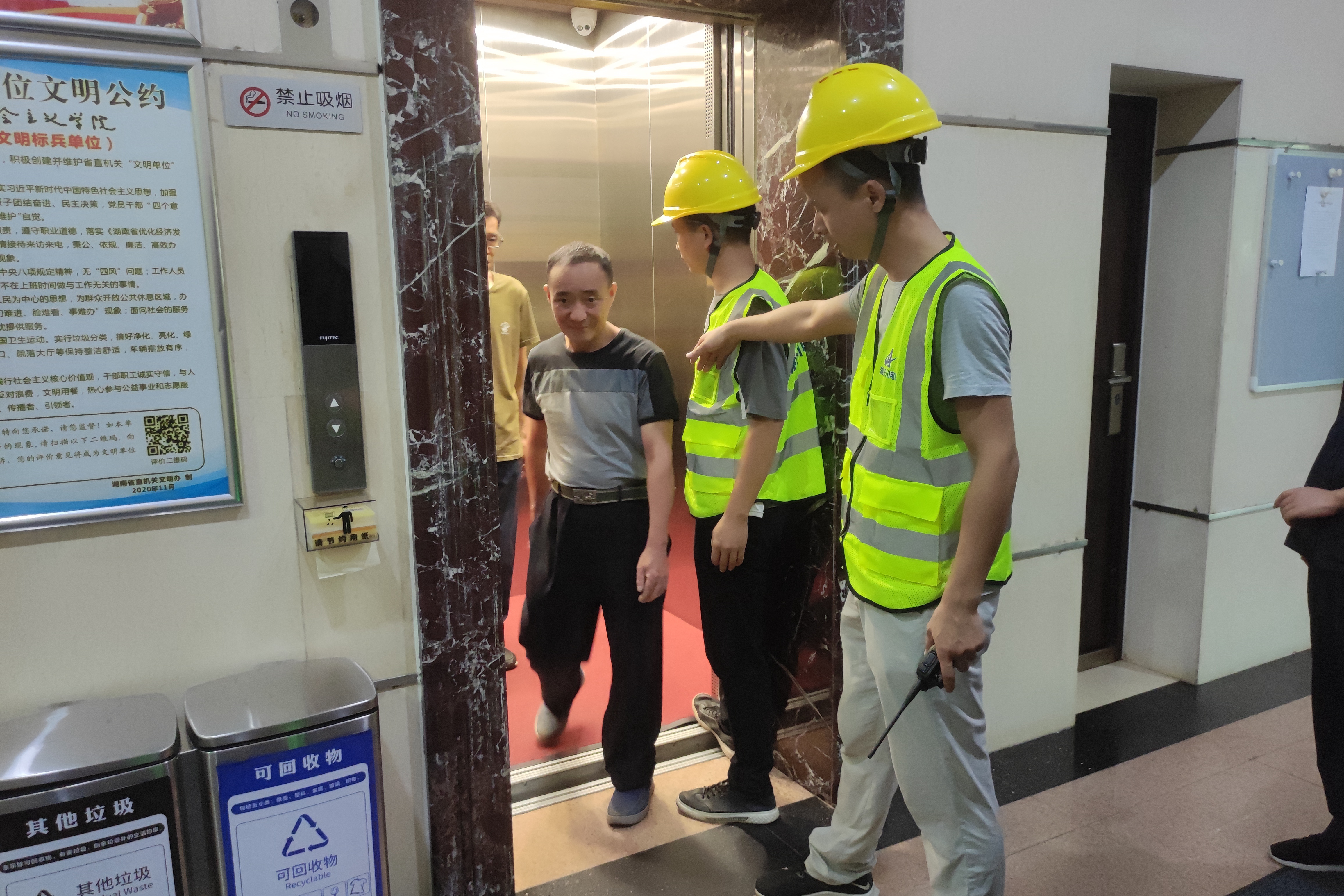 我院电梯维保单位湖南安川电梯工程有限公司工作人员参加了此次演练并提供技术指导。